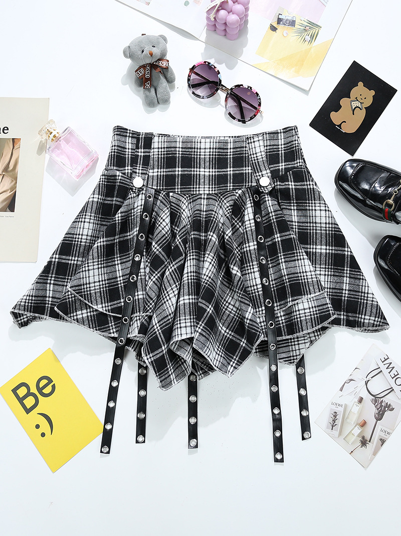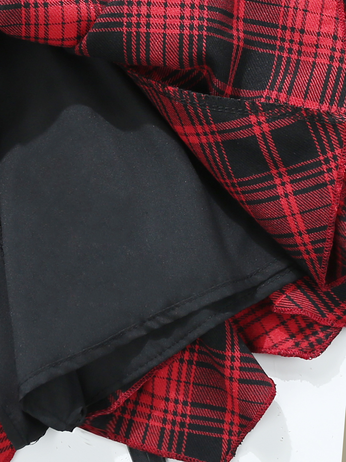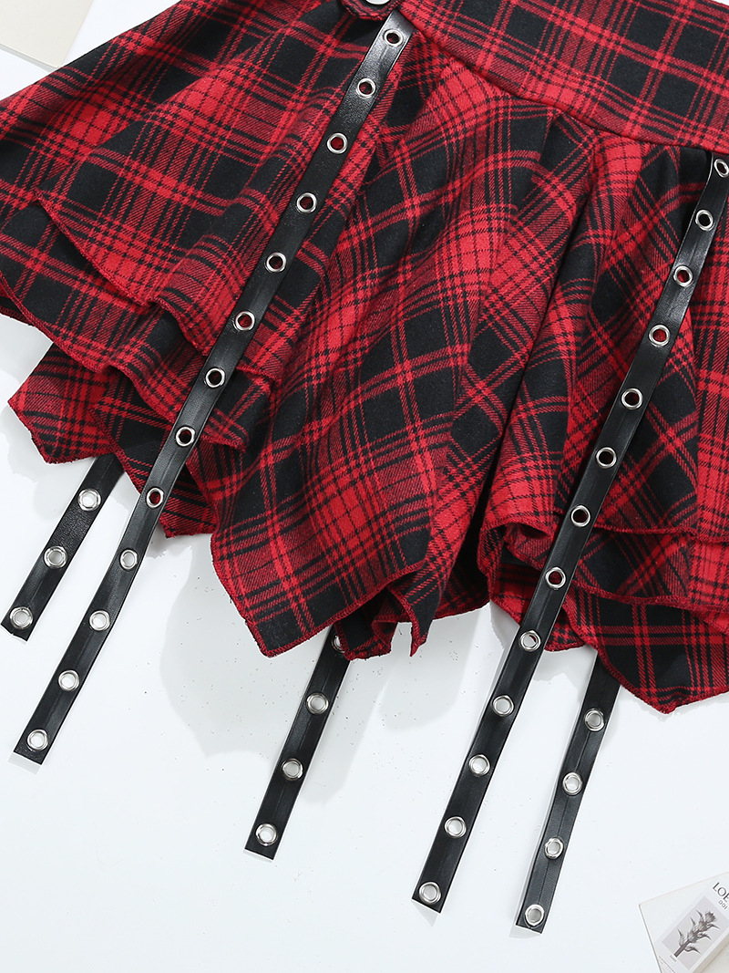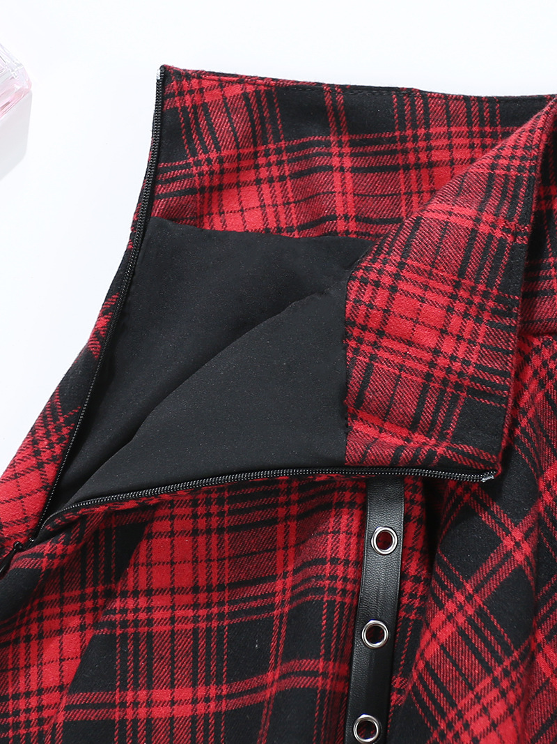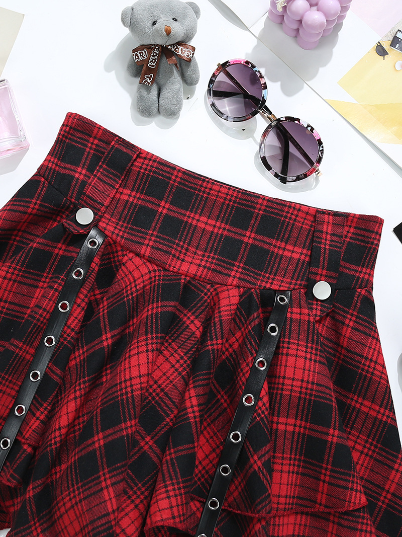 Irregular Red Plaid Pleated Skirt Exposure-proof Skirt