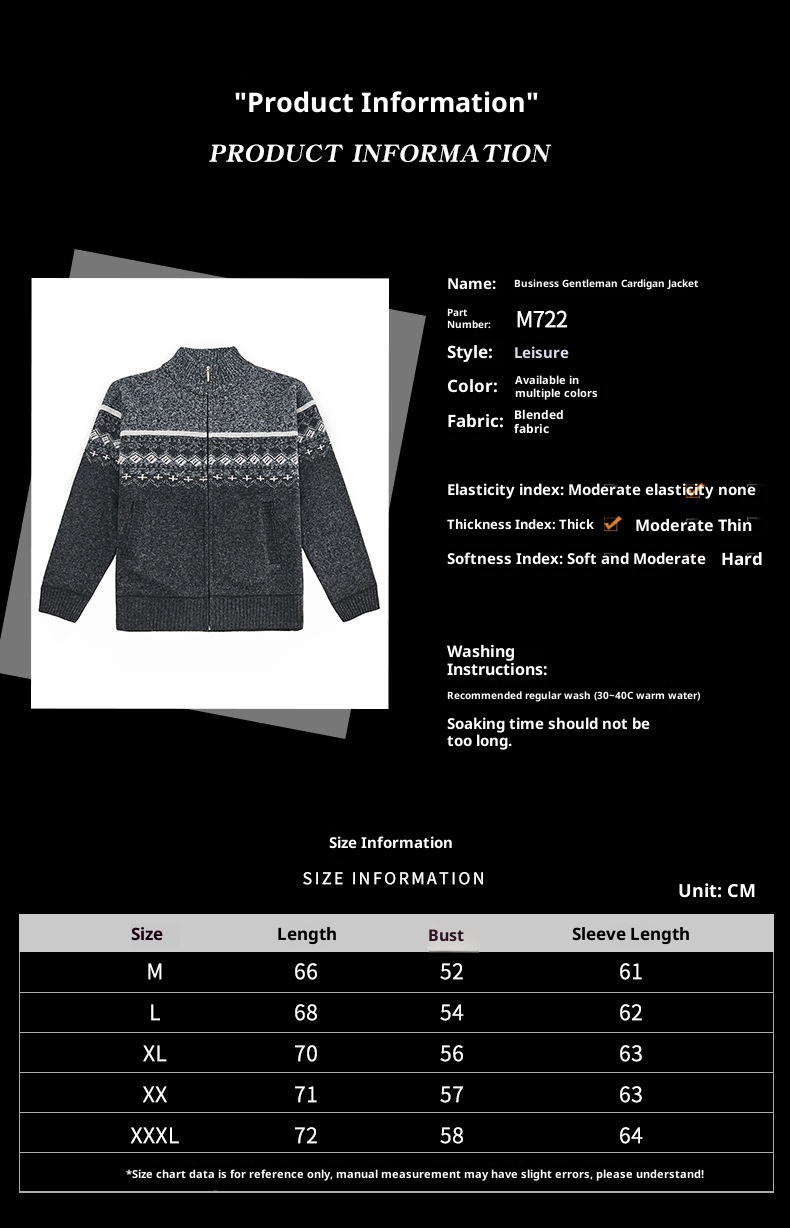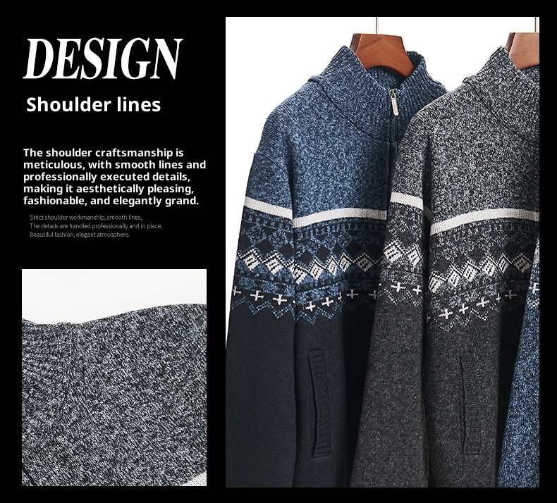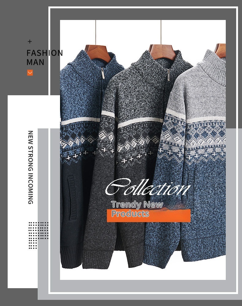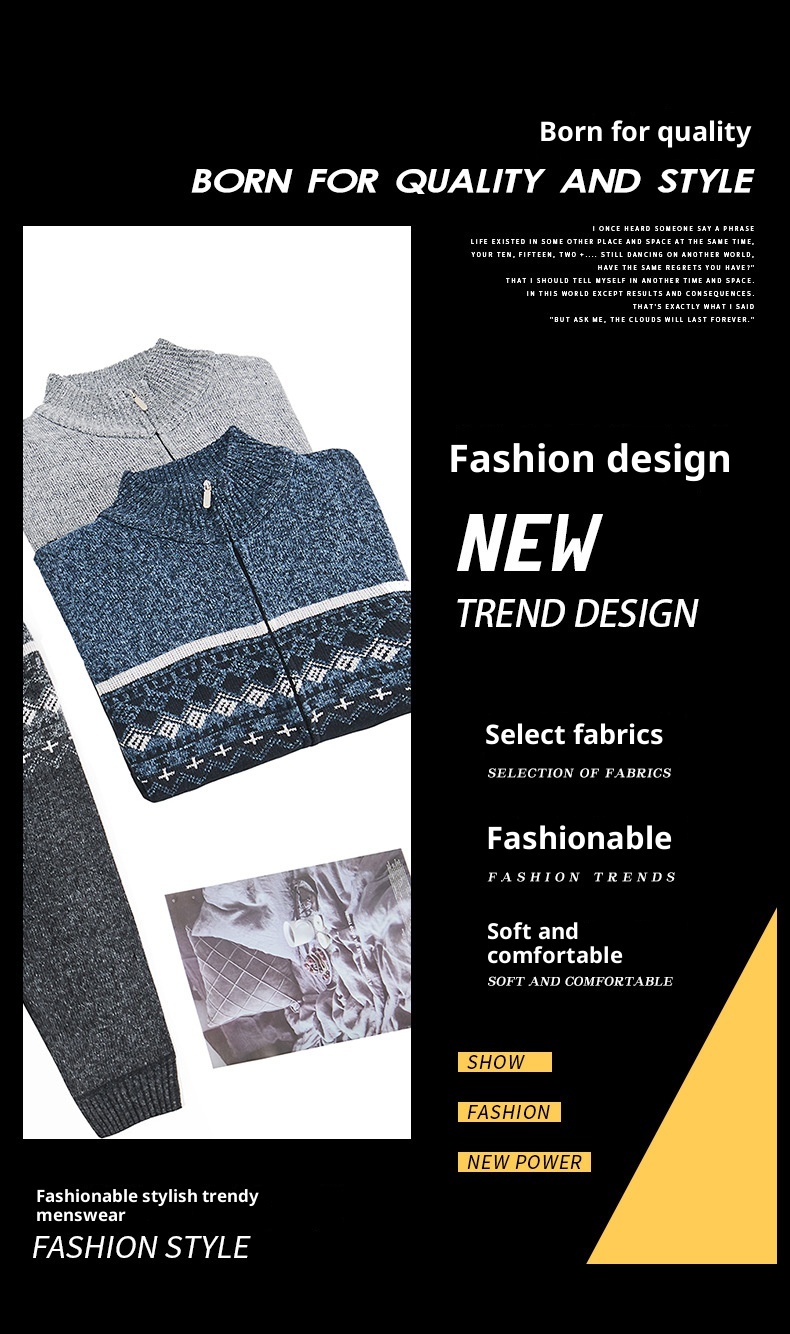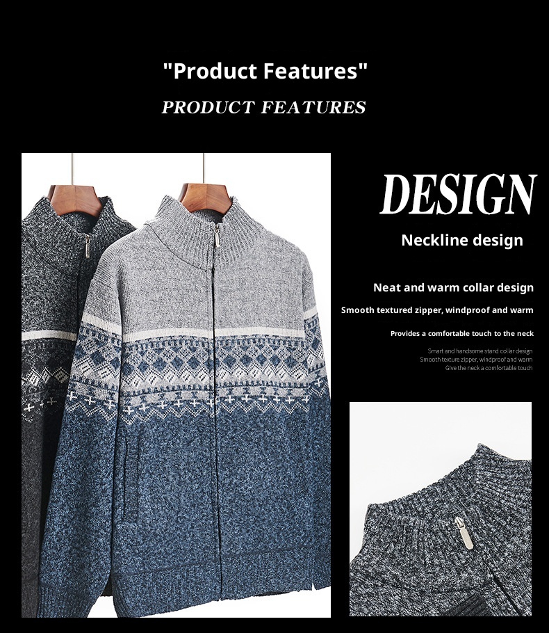 Velvet Thickening Sweater Men's Stand Collar Assorted Colors Retro Jacquard Knitted Cardigan